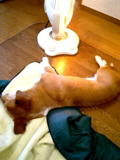 出る物も出せなかったがっくんは、早速ハロゲン前で寝ております。