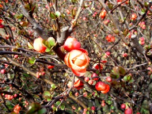 日曜日花冷えというよりも寒い中、桜を見に行きました。近くの森林公園の桜が隠れた名所になっているのです。最初はぐるりと散歩をするだけのつもりだったのですが、出店で押し寿司など売っていたので、気をよくしてつい買ってしまいました。でも、寒いからわざわざ座る場所を探して食べなくてもいいよね。などと言って歩いていたら、偶然からっぽのベンチが目の前に現れて、しかも桜が正面の特等席ではありませんか。私と夫はお弁当を食べなくてはいけないような気分になって、お茶もない中押し寿司を開けて、桜を愛でながらパクパクと食べたのでした。でも、じっとしてるとどんどん冷えてくる寒さです。食べ終わったら即散歩の続き。何本植わっているのでしょうか?相変わらずすごい桜の数です。 そしてその下や周りにはすごい人、人。寒い中すっかりお花見に興じています。桜の下に座ってお花見したい気持ちもなくはないですが、こんなに隣同士近くなっちゃうと、ちょっとね。。。桜がメインですが、他の花も咲いていてきれいでした。満開のぼけの花を見つけたので、思わずシャッターを切りました。そのうち歩いていても冷えてきたので、お花見もそこそこに、帰宅してしまいました。 お天気も曇り空だったので、今年は写真もあまり撮りませんでした。今度の日曜日もまだ桜が見られるかな?