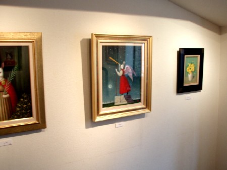 筆不精の私です。(^^;)先日は夫とこのページにもリンクしている、友人の画家・黒木雅彦さんの個展に行って来ました。場所は銀座の静かな通りのビルのギャラリーです。このビルがとてもレトロで、エレベーターのドアが二重で手で開閉しなければならないのには驚いてしまいました。だって、映画の世界みたいなんですもの。階段も木の手摺だったりして。黒木さんの個展をやっているギャラリーはこじんまりとした部屋でアットホームな雰囲気。冷たい飲み物なども出していただいて、申し訳ない気分です。展示している絵画は全部売り物なのですが、私たちは観に行っただけなので、重ねて申し訳なかったです。(^^;)絵の内容は動物を擬人化した不思議な独特な世界です。観ていると、その世界を想像してしまいます。いろいろとおしゃべりもして、他のお客さんが入って来る中、ちょっと長居をしてしまいました。 でも、楽しいひとときでした。ビルを出て、お茶をするつもりでネットで目的のお店を決めておいたのに、暑さのあまり、途中に遭遇したスタバに迷わず入って、いつものごとくシナモンロールと、アイスラテを飲んでほっと一息ついてから、帰って来ました。夫と銀座なんて、独身以来かも?