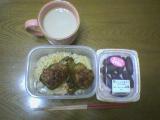 ひき肉とピーマンが安かったので、ピーマンの肉詰めを作りました。ひき肉をこねる時に手が汚れるのがイヤだったので、材料(玉ねぎ、ひき肉、卵、おから、牛乳、塩、コショウ)を全部ビニール袋に入れてコネコネ。。。スプーンですくって、ピーマンに押し込む!といった大雑把なもの。ピーマンに片栗粉をまぶすと肉との密着が増すらしいけど、それも面倒でまぶしてません(^^ゞでも、ピーマンに押し込むときに隙間無く押し込めばはがれることも無く焼きあがります。バターで焼きました。ソースは、焼いた後のフライパンにケチャップとウスターソースを同量入れて煮立たせただけ。。。すごく手抜きです。冷凍ご飯をチンした上に肉詰めをのせて、ご飯が出来ました。スーパーの惣菜コーナーで「小さな焼き芋」っていうのがあったので、ものめずらしくて買ったものを付け合せに・・・ピーマンの肉詰めの残りは保存パックに入れて冷凍してあります。