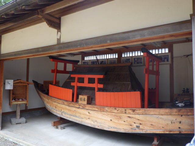 お寺の本堂の前の脇に船が展示されていました。