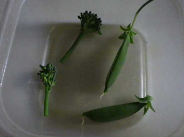 茎ブロッコリーとスナップエンドウも葉っぱが鳥にかなり食べられました😓