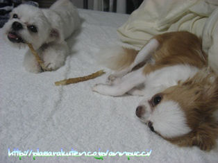 ガムうまいでしゅ。アンちゃんの分もそこにあるよ。 いらな~い。それより眠たい プッちゃん、顔が怖いですよ。 アンちゃんは、ホントに寝ました。 今日も暑いね~。初めての方でもどんどんコメントお待ちしてます。↓励みになりますので、ポチッとして頂ければ嬉しいです。にほんブログ村