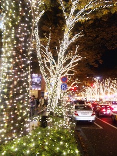 表参道のイルミネーションです。 今年は、去年より飾り付けの本数が 少ないようです。 表参道ヒルズ前のイルミネーション。 かぼちゃの馬車の中で記念写真をとる行列ができています。 私は並んでいませんが・・・・。