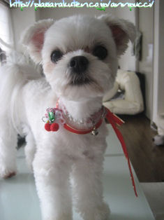 いつもの トリミングショップ ベリーズさんで、 バンダナをつけていただくのですが、 今回はリボンでした。 サクランボがついてるよ でも嫌がるのですぐ取りました。 リボン系は苦手なのね初めての方でもどんどんコメントお待ちしてます。↓励みになりますので、ポチッとして頂ければ嬉しいです。にほんブログ村