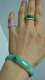 先月 、東京出張のついでに美容院へ行ったのです。そこのお姉さんに 『 たぴおさんは翡翠がお好きなのですね。 』 とふいに言われてえええ?! なんで分かったの? と思わずびっくりしてしまいました。いつもどおりバングル、リング、カービングのフルコースでしたから見る人が見ればあたりまえにわかる。接客業の人が一口トークのネタにするにはもってこいの状況だったわけで驚くほどのことではないのですがね・・・要するに山形に住んでいるとですね、今まで誰かにそんなことを言われたことがなかったんですよ。なんかいっぱい石身に着けてるな~この人。 程度にしか認知されていないわけでステキですね♪どころか、それって何ですか?という質問すらされることは稀。というわけで17年通い続けている美容院で嬉しいような気恥ずかしいような複雑な気持ちになってしまったたぴおです。そんなちと寂しい環境の中で今日は職場の先輩から ス・テ・キ~ とのお言葉をいただきとても嬉しかったコーデ 『 そのラベンダーのピンキーステキだわ~ 』 と言われこんなに淡い白ラベでもちゃんとラベンダーに見えてるんだね~と妙に感心するとともに、同じ白ラベの大きめサイズのリングを卸屋さんから早速購入♪先輩にあげるんじゃなく、私の中指用ね (汗)最近は翠やラベと好相性のYゴールドとの組み合わせが気に入ってます。同じエタニティとジョイさんの唐草ラベンダーの重ね着け