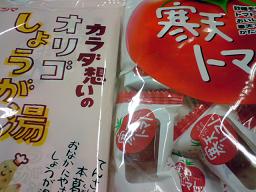 ダイエットだけが目的というわけではないのですがしょうが湯と寒天系は最近重宝しています。しょうがは何しろ体がポカポカするので料理にもよく使います。寒天とか、春雨とかは、今の病気になってはじめて自分で買って料理に使うようになりました。寒天自体がおいしい、というものではありませんがかなり役立ちます。ステロイド治療をして、便秘がひどい、という自覚症状はないのですが食べた総量が増えていることを考えるとたまっているような気もします。ひどい便秘症ではないので、こういうものを取り入れるだけで、全然違います。塩分がはいっているので、食べすぎ注意です。 寒天トマト 110g紅茶にいれて飲んでいます。☆オリゴ しょうが湯☆送料無料!!