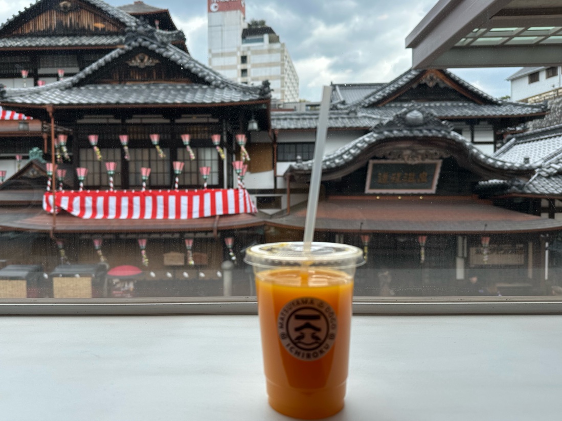 一六カフェでもみかんジュース。一六タルト揚げもおいしい!