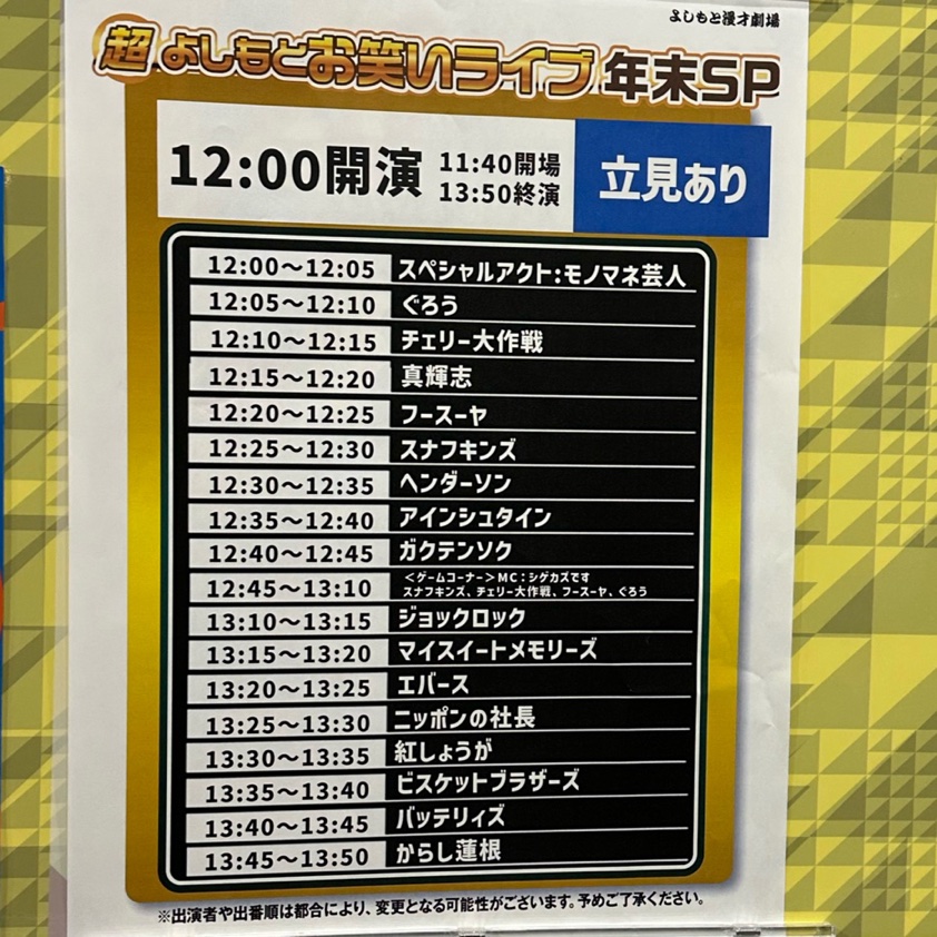 ガクテンソクと佐久間一行と吉田裕を楽しみに家族でなんばグランド花月のよる公演に行きました!旦那さんは、吉田裕の激推し担なので、朝からソワソワ落ち着かない( ´艸`)フフフお席がB列の中心近くというめっちゃ良いお席で、近すぎた!!下から見上げる感じ。サバンナ八木MCブラジルの人聞こえますかー?の声は割と小さい。ジェラードンあにゃこらオススメの「かんた!!(怒)」のネタ。かみちぃの女装がホント好き。佐久間一行さっくんー!平和で楽しいー!!発想力があにゃこらの斜め上をいってるので、そっちからこう!?そしてこう!?と笑ってしまう←伝わってる?(゜∀゜)ハテミルクボーイオカンの好きなもの、それどーなってんの。と、いつもの感じ。もりやすバンバンビガロほんわかした雰囲気とゆっくり口調なのに、客への要求が厳しめ。←嫌いじゃない(・∀・)笑客側がアワワとしつつも楽しいお時間。ガクテンソクめちゃくちゃ面白かった!セカンドでの優勝ネタも織り交ぜつつ、客に問うて間を感じてそれにあった切り返しをするので爆笑!!ホントにお上手。矢野兵藤矢野パイセン、お客さんめっちゃ見るやん!前方列の人みんな目があったのでは!?(゜∀゜)!!さすがのベテランで爆笑をかっさらう。お子Bは、1番気に入って笑ってました。吉本新喜劇旦那さんの推しメン、吉田裕座長回!歴代の座長(内場さん、石田靖、バタやん)も。我らがアイドル森田まりこも登場でまりこのシーンは、ずっと面白い!あにゃこら的には、吉田裕がツッコミで不安になり、「もみもみでいいですか?」と先輩の座員さんに敬語で言っちゃうあたりがとても好きです( ´艸`)ネー秋の夜長による公演。お得で楽しくてまた行こっーと!!