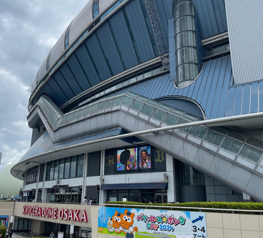 お子Bが日ハムの新庄監督のファンなので、久々にあにゃこらも野球観戦に行きました!京セラドームが見えるとワクワクしちゃう。お席は、一階三塁側A指定席。オリックスファンも多いものの、日ハムファンも割といて応援しやすいお席でした。この日は、オリックスの夏のイベント中ということもあり、ポンタ親子が来たり、演出が盛りだくさんで楽しかったー!!試合は残念ながら、オリックス先発の宮城の好投で日ハム打線が全然打てず、3-0で完敗でした。オリックス森の打った瞬間にホームラン!とわかるホームランも見れて良かった!笑ファウルボールってもらえるんだね!前方のお席の方達は、グローブ持参で取ったりしてました。もらえるって記念になるよねー!三塁コーチャーをする森本稀哲。ファンの声に応えて控えめに手を振ってくれたり、優しい〜。てか、ひちょりスタイルめっちゃ良いやん!!お子Bは、本日の試合にも行くので、今日は勝てたらいいなー!!