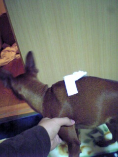 ↑の写真は点滴でこぶができたあんずですwあんずが体調崩しました…il||li _| ̄|○ il||li2、3日前から元気がなくてね、くたーってしてて今日学校から帰るともぉぐったりで嘔吐も何回かしました。そいでσ(´∀`мё)とオカンは病院へ行って検査してもらいましたあんずは警戒心がめっちゃ強くて病院の先生でもかみつくくらいの性格やねんけど今回はもぉ無抵抗でされるがままw相当しんどかったように思いますわヽ(´Д`ヽ ミ ノ´Д`)ノ注射3回打って点滴とレントゲン撮ってもらいました。レントゲンみるとなんか異物みたいなものが写っててガスが溜まってるんか、それか異物が写ってるかもしれんくて異物が入ってたら手術しなあかんらしいIl||li _| ̄|○ il||liたぶん姉ちゃんが言ってたけど戻したときタマネギのカラみたいなんが出てたから中毒症状が出たんちゃうかなぁ~って。犬ってタマネギは消化できないらしいね。禁断の食べ物みたいなw今日は絶食絶水で明日また病院行くんだとさ(o´Д`)ノこんなぐったりしておとなしいあんずは初めて見ました。