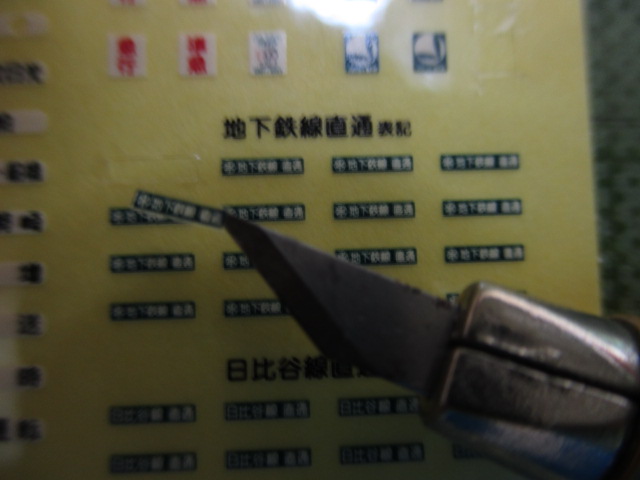 8両あるので都合32箇所、“直通表示” を貼っていきます。