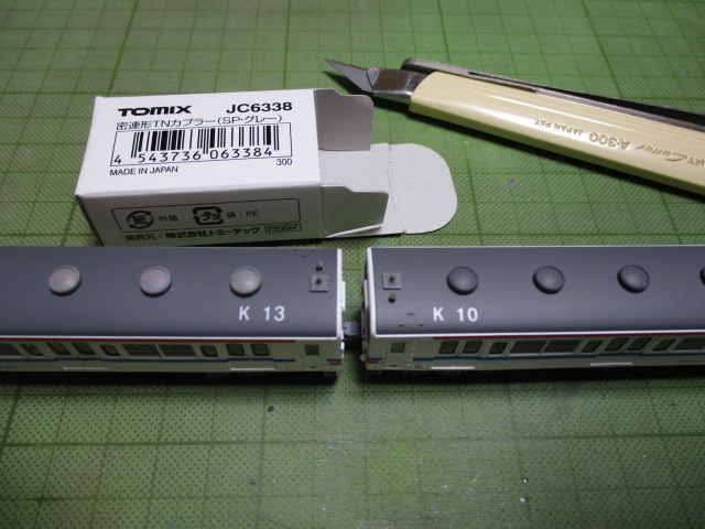 組ませる予定のK13編成にTNカプラーを取り付けるべく排障器加工。