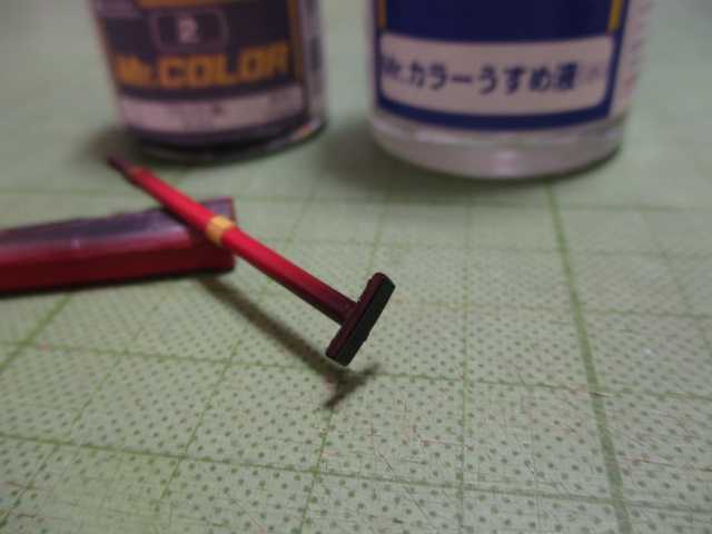 最初に全体塗装する際にワリバシに固定して塗り残しとなる部分、