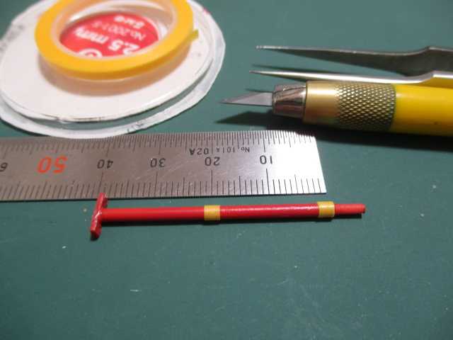 昨日赤塗装した腕パーツ、赤として残す部分をマスキングして