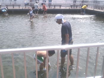 朝6時に出発して義父母と一緒に横浜へ出掛けました我が家にしてはゆっくりの出発…平日だったので見事に通勤ラッシュにぶつかり大渋滞ハマってしまい、到着したのが10時まずはできたばかりの《MARK IS》へ早めのランチをした後に店内をフラフラしながらお買いものそしてランドマークタワーの方へ歩いて行くと、いつもの場所で大道芸人さんがいたので、見てみることにこれがまた、とっても日本語が流暢な外人さんで皆とにかく笑わされるわ、子供達は引きつけられるわで結局最後まで見ることに 子供達はかなり楽しんでいました(^^♪その後は、コスモワールドでひと遊び~まずは全員で娘が大好きな観覧車へ(*^_^*)その後は小さなジェットコースタの【バナナ・コースター】へ次は二つに分かれて息子とパパは急流滑りの【クリフ・ドロップ】へ行って、大絶叫してきたようです(私も行きたかったぁ)私と娘は【ノースポール】という穏やかな急流?滑りへしばらく遊んでからは、みなとみらい~赤レンガまでシーバスに乗って移動暑い日だったので風が気持ちよくてご機嫌♪ 赤レンガに着くと…沖縄を再現した砂浜を発見!義父母は赤レンガ内を散策、パパはみなとみらいまで車をもちに、私は暑い中子供達を見ていました最後は氷川丸内を見学(*^_^*)この時点で16時過ぎで、ここでついに娘が爆睡状態に1時間ほど寝てホテルに到着山下公園に歩いて行ける中華街のホテルだったので、夕食後に皆で散歩へきれいな夜景を見て満足の私でした♪1時間お昼寝した寝付きの悪い娘ですが、さすがに炎天下で疲れたのでしょう…私がシャワーを浴びて出てきたら、パパ・息子・娘で一つのベッドで仲良く夢の中でしたにほんブログ村