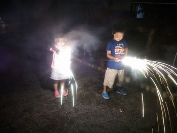 今日は実家がある沼田市の第一回花火大会へ行ってきました何でも43年前に開催されたことがあるらしく、実行委員としては何としてでも成功させて次回へつなげたい一回目だったようですでも朝からずっと雨が降り、時には大雨となっていたので中止か…と思いながら時間が来るのを待っていましたさすがに子供達に期待を持たせるわけにはいかず、時間まで内緒にしていました18時を過ぎ仕事だったパパも到着ご飯を食べながら大人はソワソワしていましたそして19時…ドカンドカンと鳴る突然の花火の音に子供達はビックリ一日中降り続いた雨がウソみたいにあがり、家のテラスから大きな花火が見えて子供達は大はしゃぎ…いや、大人も大はしゃぎ実はこの花火大会、家から直線距離にして2kmもない場所で上げているため、花火会場に行かずしてよく見えたのですしかも思っていたより我が家寄りだったので、庭からでも見えたのですが、もっと良く見たかったので、子供達を連れてすぐ下の道へ行ってみました最初は数人だった見物人も、通り掛けに思いがけず良い場所を見つけたとばかりに次々と道路に車が停まり…あっという間に多くの人が集まりました 約2時間でしたが、あっという間だったように感じますそして、花火が終わりしばらくするとまた雨が降り始め、次第に強くなりましたまるで花火が終わるのを待っていたかのようで、きっと実行委員の方達はこの奇跡に打ち上げの飲み会も盛り上がったことでしょうまた来年も見られることを期待したいと思います