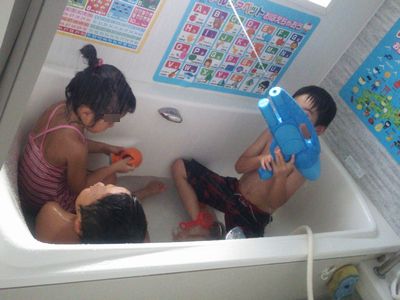 今日は暇だなぁと子供達と何しようか考えていたら、玄関のチャイムがなりました近所のお友達が「今、何してる?」と遊びに来てくれましたモチロン子供達は大はしゃぎ午前中は家にあがってもらって一緒に遊び、お昼に一度別れて午後はお友達の家にお邪魔しましたそして、お風呂プールでこれまた大はしゃぎ暇なはずの一日が、思いがけず楽しい一日となりましたにほんブログ村