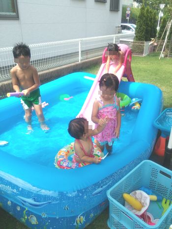 今日は娘と幼稚園で同じクラスのご近所さんの家へ遊びに行きました暑かったので着くなりプール遊び開始~大きなプールに大はしゃぎ(^o^)/滑り台からは水も噴き出す優れもの!最後まで入っていた娘っ子(^O^)テラスでランチタ~イム(^^♪お昼を食べて家の中で遊んでいたものの、またまた「プールはいる~」そして「ジャ~ンプ!」息子君…気を付けておくれよお陰様で楽しい一日を過ごせましたにほんブログ村