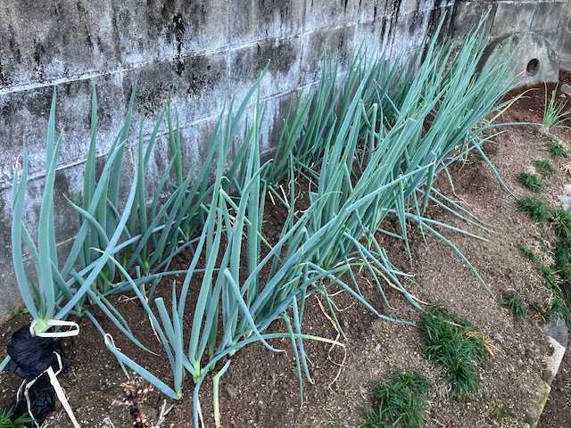 先日、書いていてアップし忘れていたものがあったのでアップ致します。大きくなっていない玉葱を少し残していましたが、梅雨入りもそろそろで、なかなか大きくならないので収獲してしまいました。葉を浸けているものは少しましですが、それでも小さいです。家に持って帰って、カーポートの下で乾燥させ、軒下やコンテナに保存します。今年は軒下が一杯にはならず、コンテナの保存はなくなりそうです。今年は硬く締まっていますが、かなり小さいためひとくくりの数が多いです。小さいものはネットに入れています。最後に取ったものは、もう少し乾燥し、小さいものはネットに入れて軒下に吊り、あとは誰かに差し上げる予定です。細ネギの色が悪く、アザミウマかなと思っていましたが、よく見ると、サビ病が出ていました。アミスター20+スミチオンで予防しました。長ネギもサビ病が出ていたので、同様に防除しました。梅雨前に見つけられて良かったです。ランキングに参加しています。クリックよろしくお願いします。にほんブログ村
