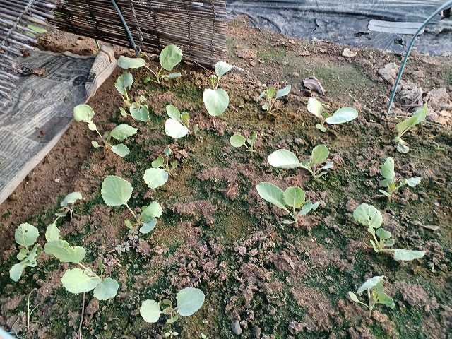 白菜の苗も大きくなっています。これは80日白菜です。左の大きい方が先に移植したもの、右の小さいものは遅らせて移植したものです。発芽の悪かった60日白菜は播きなおしたので、小さいものが殆どです。ブロッコリーも発芽が悪く、2回播きなおして移植しましたが、虫か何かで枯れて3株しかありません。サラダ菜も発芽が悪かったですが、あとから出てきたので増えました。まだ小さいですけど。右はキャベツです。どれもまだ小さいですが、来週だと遅い感じなので、定植することにしました。これはサラダ菜。鉢をつけて植えつけます。80日白菜。60日白菜。ブロッコリー。定植後、寒冷紗を掛けて終了です。白菜はヨトウムシ対策がこれから必要になります。ランキングに参加しています。クリックよろしくお願いします。にほんブログ村
