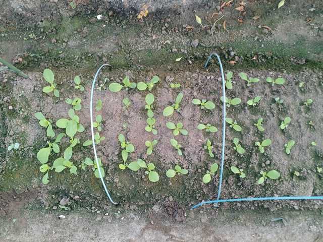 葉物の種を播き始めています。キャベツ、カリフラワーの発芽は良かったのですが、ブロッコリー、60日白菜の発芽が悪く、播きなおしたりしています。最初に播いた60日白菜はあまり出ていません。2回目の60日白菜は少し発芽がいいようです。1回目の種は古いものも半分あったせいかもしれません。80日白菜を移植したものです。まだ小さいです。移植したキャベツです。左が2回目サラダ菜、右がミックスリーフレタスです。サラダ菜は発芽が少なめです。丸莢インゲン、平莢インゲンも播いていますが、丸莢は2株しか、平莢は全く発芽しません。まだまだ暑いようです。もっと日陰にして播種する必要がありそうです。ランキングに参加しています。クリックよろしくお願いします。にほんブログ村