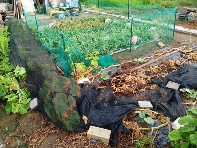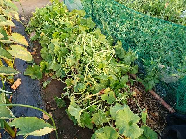 カボチャは株元が枯れて蔓の途中から根が出て葉が茂っていました。今回、実をすべて収穫しました。というのも、コルク化するのを待っていましたが、株元に近い実から食べられているからです。ダンゴムシかと思っていましたが、今日見るとコオロギガ沢山いたのでコオロギが食べたかもしれません。爪が刺さりにくいくらい硬めになったものと簡単に刺さる柔らかいもの。これは食感が良くないと思うので、スープ向きです。今年はいいものが取れず残念でした。今年は秋採りカボチャに期待します。ランキングに参加しています。クリックよろしくお願いします。にほんブログ村