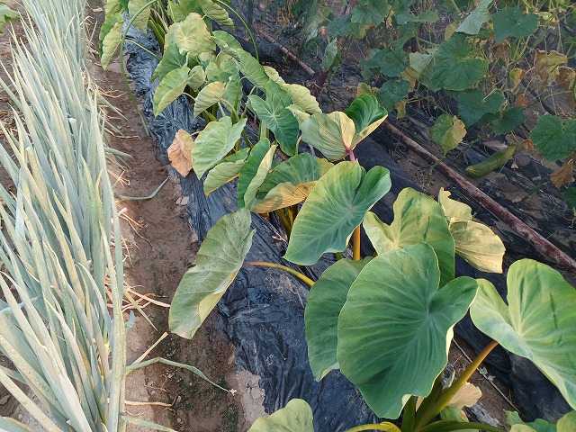 サトイモの葉が枯れてきていたので日よけをかぶせています。日よけの高さが低いので窮屈になってきています。葉は少し緑が濃くなってきた気がします。ただ、寒冷紗に近く当たっていそうな葉は部分的に枯れているようです。これはきれいな葉です。雨が続いたので、寒冷紗を外すことにしました。葉の色は良くなっている感じですが、大きさはあまり変わらない感じです。第二弾のサトイモはこんな感じ。脇芽を取り除きました。晩生エダマメの倒伏対策にテープを張りましたが、テープが見えなくなっていました。伸びる前にやっておいて良かったです。テープの間に枝が伸びてくれて倒伏防止になります。いつものように60日、80日白菜を播種しました。発芽後移植し苗を作ります。ランキングに参加しています。クリックよろしくお願いします。にほんブログ村