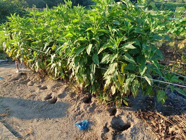 今年のナス、ピーマンは調子がいいです。ピーマンは今は少し落ち着いていますが、ナスはコンスタントに取れています。第一弾は少し収穫が減っていましたが、脇芽が伸びて増えてきました。第二弾はコンスタントにできています。とろーり旨白ナスもコンスタントに取れています。落花生も広がってきています。1つ落花生の殻が落ちていたので、カラス対策をしました。今年は周囲を糸で囲うことにしました。これで防除できると収穫もしやすくていいんですが。ランキングに参加しています。クリックよろしくお願いします。にほんブログ村