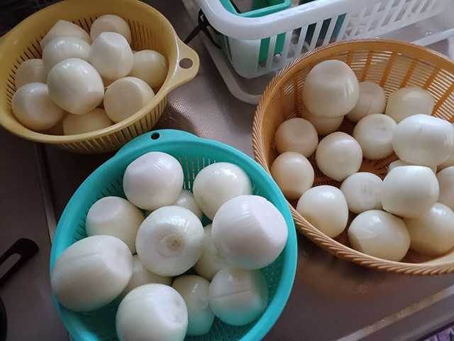 今日は7/14以来の久しぶりの雨です。間違いなく恵みの雨になってくれるでしょう。タマネギは家で日陰に保存しています。昨年は良く締まった小さめのタマネギで腐りはあまりありませんでした。今年も締まったものが取れましたが、少し大きめ。この暑さで急激に腐ってきています。外から痛んできたものはまだいいんですが、中が腐っているものは廃棄です。中から腐っているものが出てくると人にあげることが難しくなります。中から痛んだ場合は、汁が出てきます。数十個痛んでいました。食べられるものは食べていきます。廃棄分はかなりの量です。10kg近くありそうです。これからどんどん腐っていくと思うので、早めに選別をしていこうと思います。ランキングに参加しています。クリックよろしくお願いします。にほんブログ村