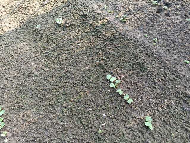 大根は3日目で発芽し始め、4日目にベタ掛けの不織布を外したんですが、やや徒長気味になっていました。隣に背の高いエダマメがあるので余計に徒長しやすいようです。化成肥料を撒いて土を寄せておきました。また、発芽していなかった所には追加で播種しました。深播きの所が発芽しかけていましたが、播き直しました。今年も第三弾くらいまで分けて播いていく予定です。ランキングに参加しています。クリックよろしくお願いします。にほんブログ村