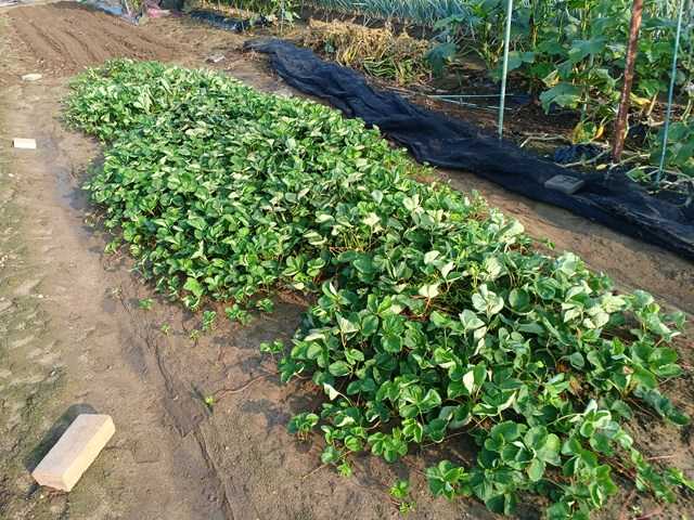 イチゴ苗も枯れずにここまで来ました。少し密集しすぎて徒長気味になっています。親株が枯れそうになっているものもありますが、子株に栄養を送ってくれています。昨年からお盆休みにイチゴの苗を取ることにしています。最近ゲリラ豪雨が多いので土がかなり湿っていますが、鋤いて畝を作りました。6種類の品種の苗を取る予定でしたが、もう1つの品種も苗ができていたので少しだけ取って7品種を移植しました。移植は2日間で、約240株行いました前日のもの本日のもの暑いので日よけの寒冷紗を二重にしました。まだ苗が残っていますので保険でそのままにしています。ランキングに参加しています。クリックよろしくお願いします。にほんブログ村
