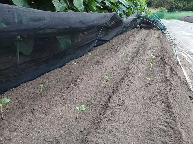 今年も暑いので、秋野菜の播種を遅らせていましたが、そろそろ始めることにしました。まずは、キャベツ、ブロッコリー、カリフラワー、そしてサラダ菜から。いつものように筋播きです。播種後は乾燥防止のため不織布を掛け、さらにすを掛けました。動物が上に載ったりすることがあるので、周囲にポールを立てました。効果の有無はわかりませんが。ランキングに参加しています。クリックよろしくお願いします。にほんブログ村