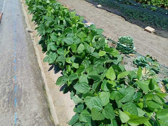 晩生エダマメの肴豆に花が咲き始めていました。開花時期に追肥が良いということで、化成肥料を追肥していました。昨日の雨は期待したほど降らず、今週末からの雨に期待するします。晩生エダマメは木が大きくなるので、倒伏防止対策が必要になります。支柱を立ててそこに平テープを張りました。この後あと二本張り、倒伏防止対策は完了しました。インゲンは暑さのため実が着いていません。一旦収穫が終わった残った苗を置いていたものですが、花が咲いて実が着き始めていました。第四弾も少しだけ。食べられるくらいまでなるといいんですけどね。ランキングに参加しています。クリックよろしくお願いします。にほんブログ村