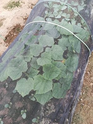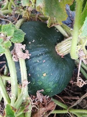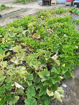 そのキュウリの定植予定地のカボチャ畑ですが、まだ幾らか葉が残り