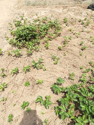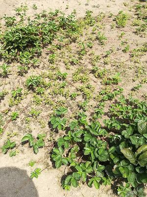 あと2週間くらいで苗をとる苺ですが、草が増えています。