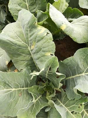 カリフラワーは強風で葉がこすれるとこの病気になりやすかったような。