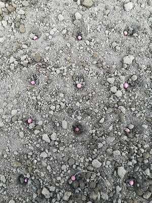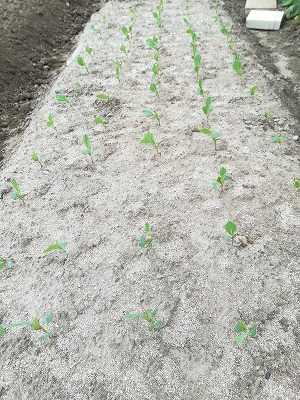 苗のある土は表面が硬くなっています。