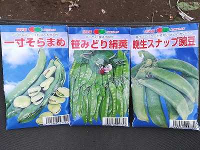 今日はソラマメ、絹さや、スナップエンドウを播種しました・