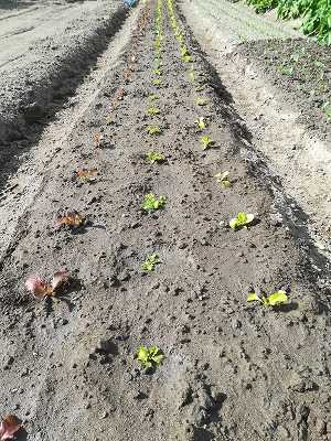 明日は雨が降るということで今日は2回目のリーフレタスとサラダ菜を