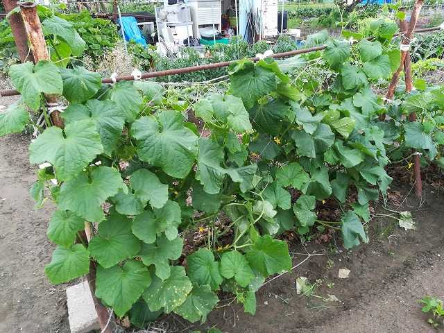 第二弾のキュウリも放任しちゃっているので茂ってきています。