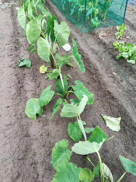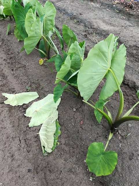コイモですが、葉が落ちているものが増えています。