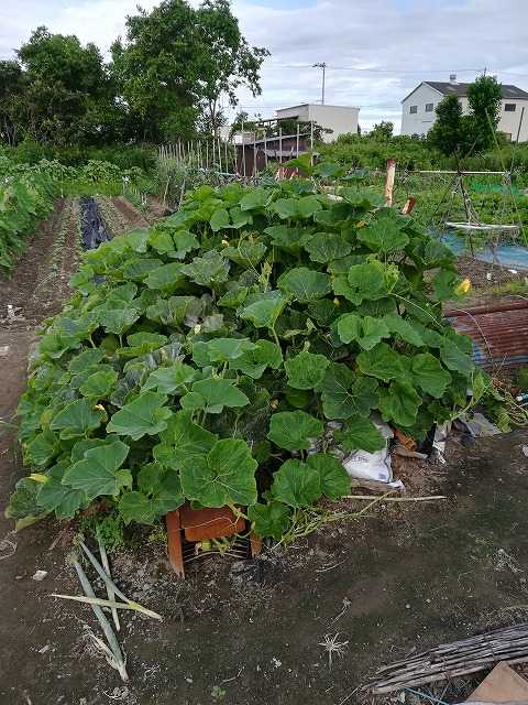 これとは別に植えていないですが、野良カボチャが幅をきかせています。