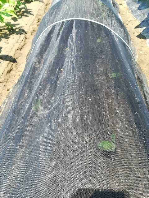 日差しが強く暑くなっているので寒冷紗を掛けて起きました。