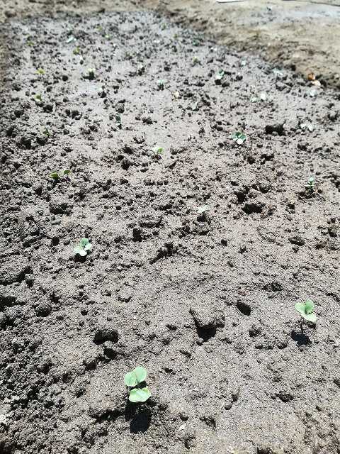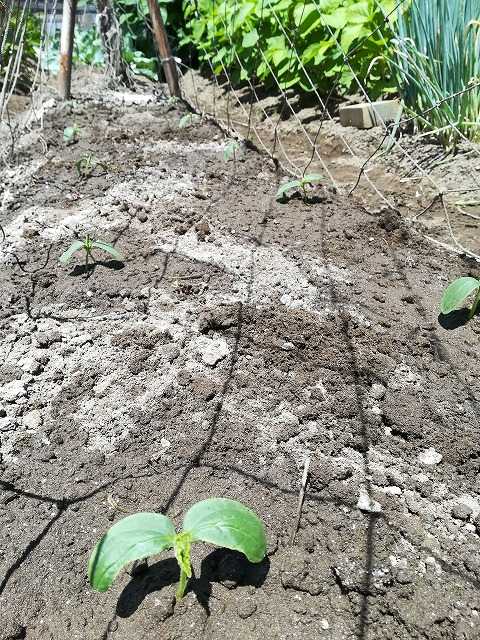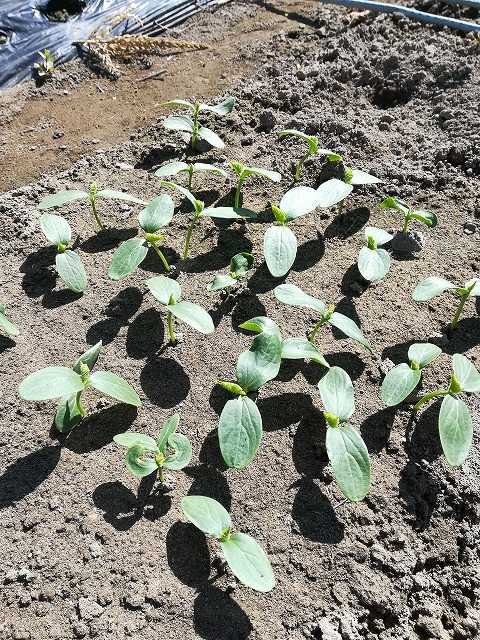 先日播種したキャベツ、キュウリも混み合ってきたので、