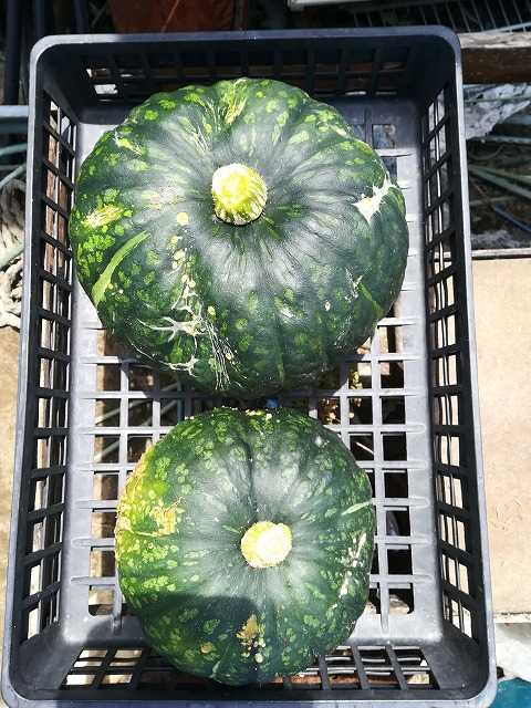 野良カボチャも葉が枯れて強い光で腐りそうなのでとりあえず2個収獲しました。