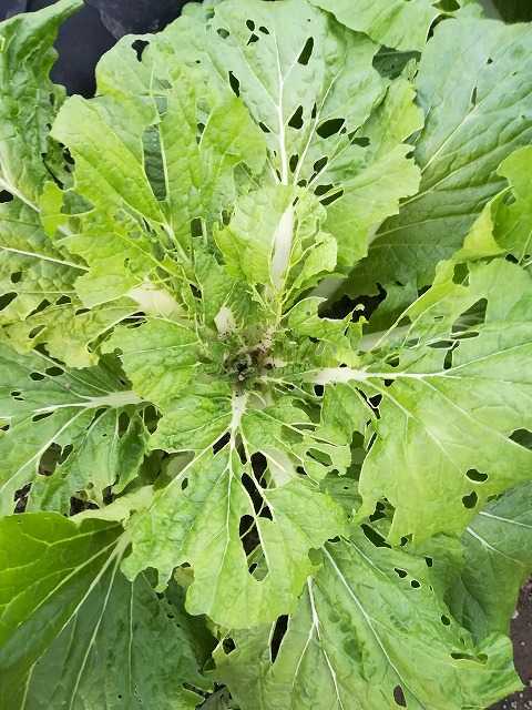 第一弾の白菜は少ししかありませんが、1個穴だらけになっていました。