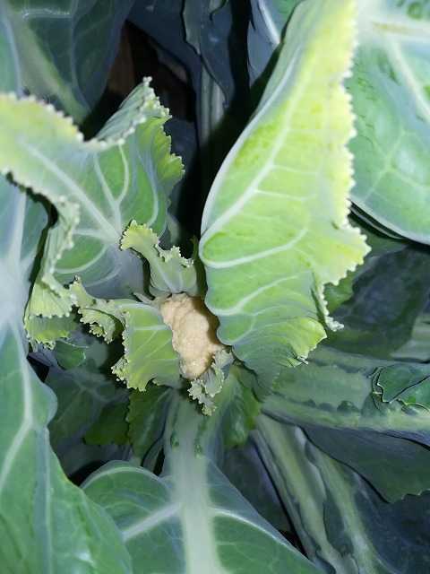 カリフラワーは葉ばかり大きくなってどうなるかと思っていましたが、