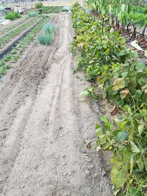 昨日収獲した肴豆の跡地は玉葱の予定地になるので鋤いておきました。