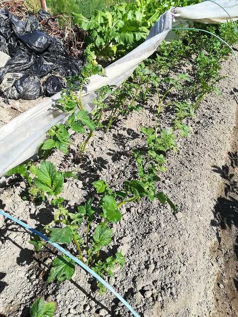 ビニールトンネルを掛けた奥にはいまひとつのインカのめざめがいます。